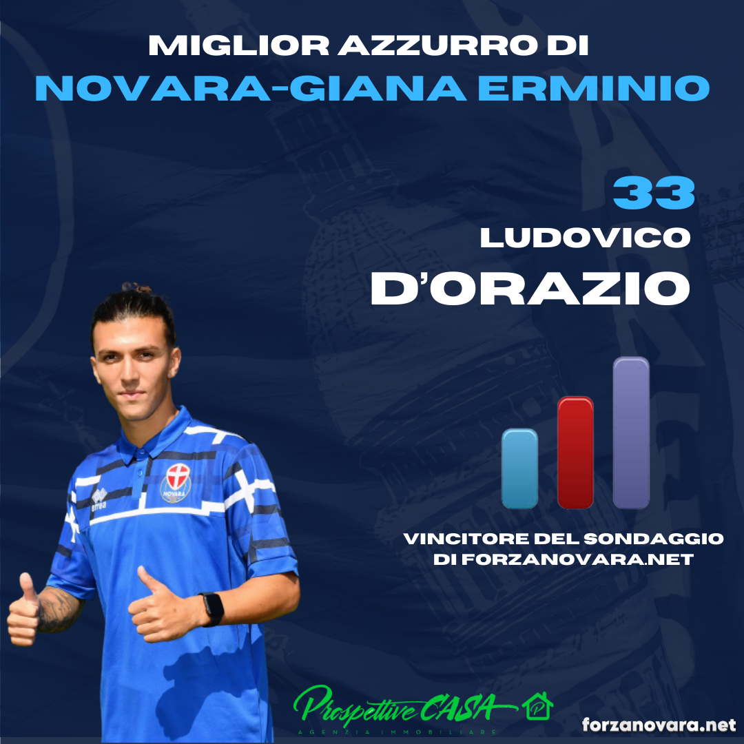 Per i tifosi azzurri, che hanno partecipato al nostro sondaggio, è Ludovico D'Orazio il migliore azzurro della gara Novara-Giana Erminio con il 30,50% di preferenze. Secondo posto per Gerardini, terzo per Boccia.