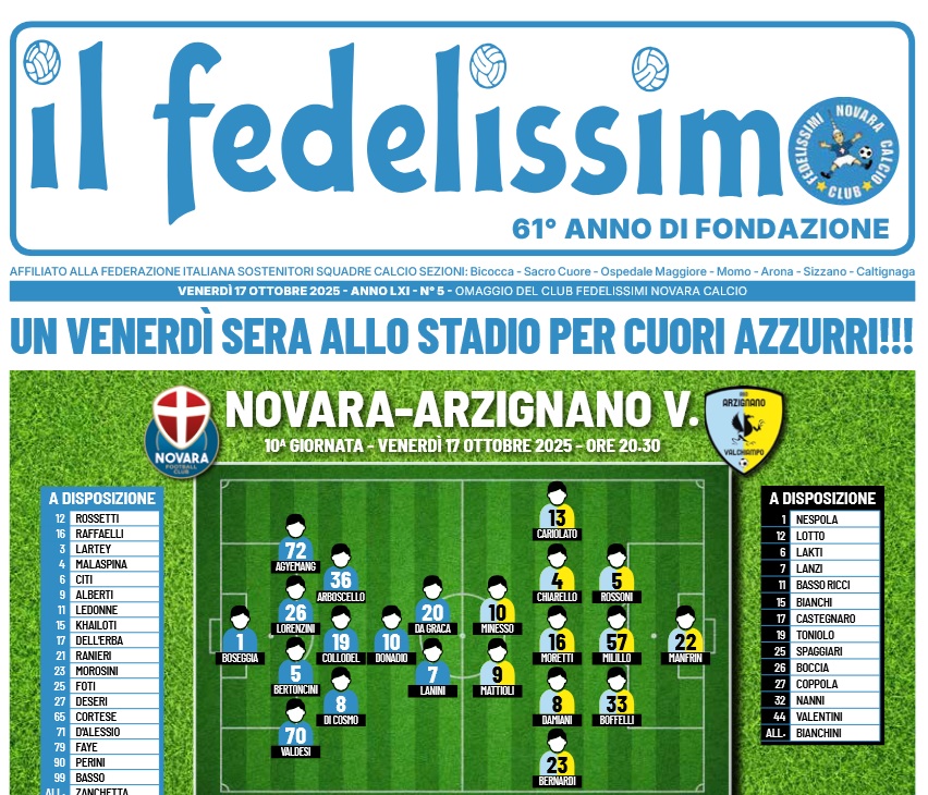 Leggi qui in anteprima il nuovo Fedelissimo di Novara-Arzignano.