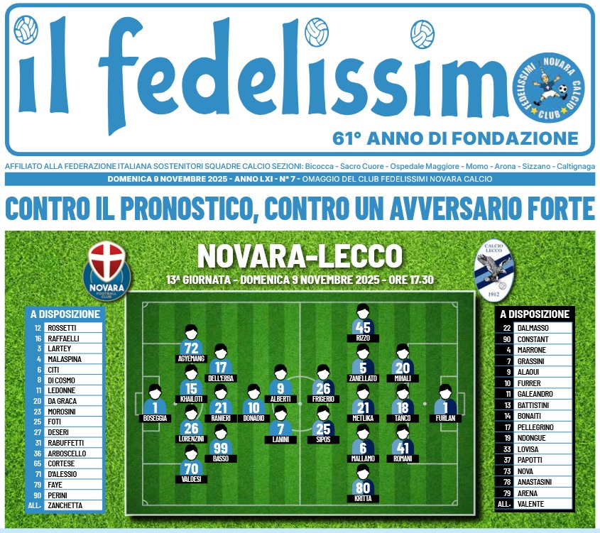 Leggi qui in anteprima il nuovo Fedelissimo di Novara-Lecco.