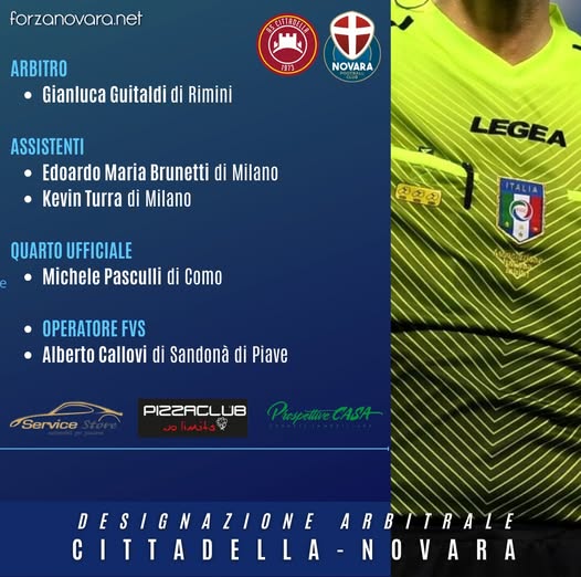 E' stato designato il quintetto che dirigerà la diciottesima giornata di campionato tra Cittadella e Novara.