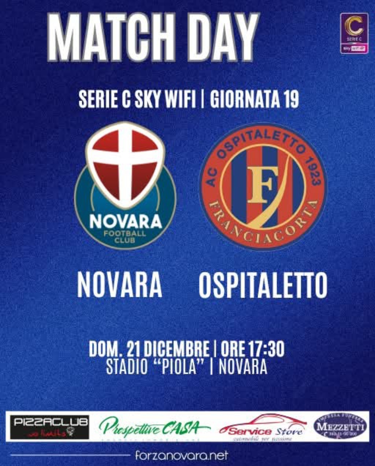 Tutto pronto per l'ultimo atto di questo girone di andata. Gli azzurri, nel tardo pomeriggio (h.17:30), accoglieranno il neopromosso Ospitaletto, team bresciano reduce dal successo interno di sette giorni fa contro la Pro Vercelli.