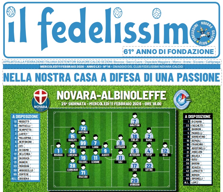 www.forzanovara.net - il primo portale dedicato alla squadra di calcio della città di Novara e a tutti i suoi tifosi© ForzaNovara on line dal 2000 da un'idea di Carlo Magretti - email: redazione@forzanovara.net All Rights Reserved - Copyright © 2000-2030