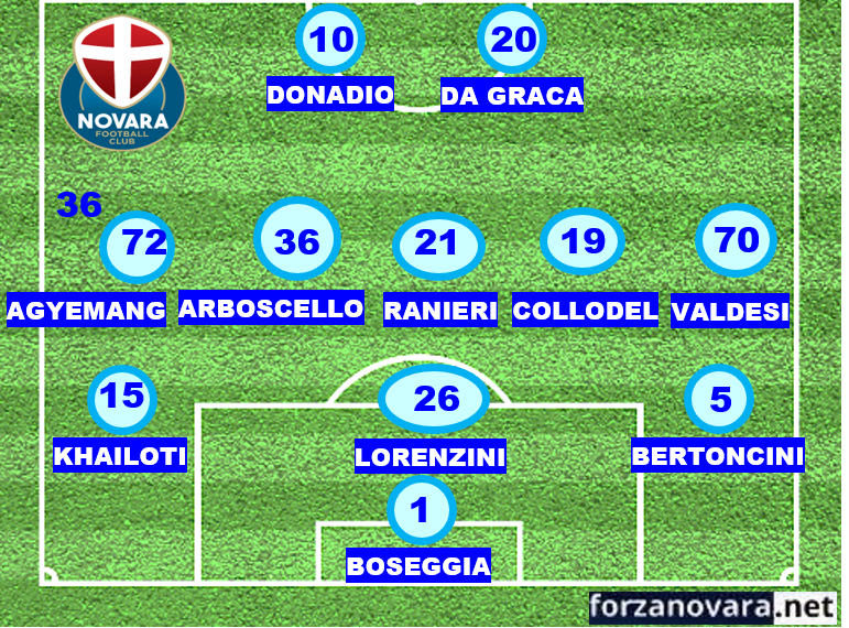 Un 3-5-2 composto da Bertoncini-Lorenzini-Khailoti in difesa e Valdesi-Agyemang a correre sulle rispettive corsie. Con un folto centrocampo composto da Collodel-Ranieri-Arboscello (con Basso ancora out e Malaspina prima pedina da giocarsi a gara in corso) e con Donadio di nuovo posizionato davanti a fianco di Da Graca.